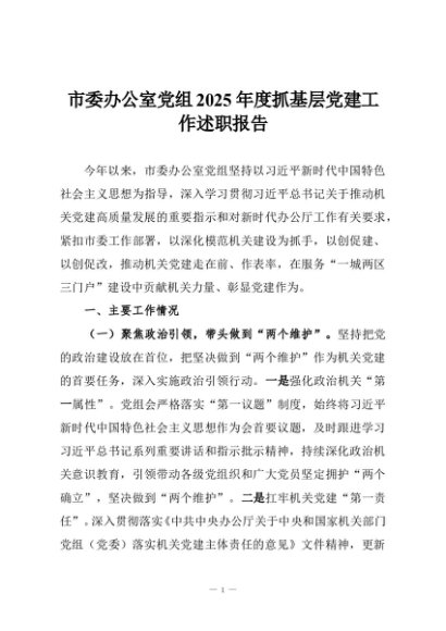 / 【七哥公文】2025年:市委办公室党组2025年度抓基层党建工作述职报告+更多免费公文+VX:QiGeGongWen2024