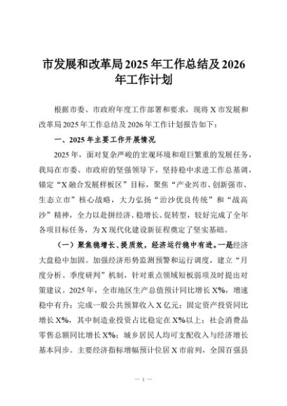 【七哥公文】2025年:市发展和改革局2025年工作总结及2026年工作计划+更多免费公文+VX:QiGeGongWen2024