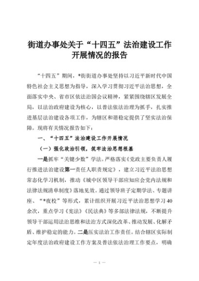 / 【七哥公文】2025年:街道办事处关于“十四五”法治建设工作开展情况的报告+更多免费公文+VX:QiGeGongWen2024