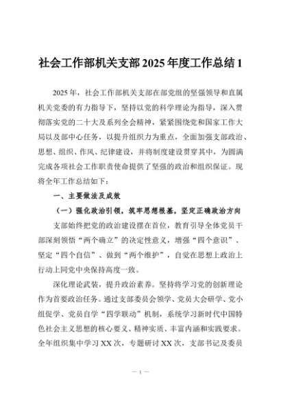 / 【七哥公文】2025年:社会工作部机关支部2025年度工作总结1+更多免费公文+VX:QiGeGongWen2024