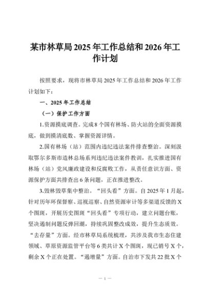 / 【七哥公文】2025年:某市林草局2025年工作总结和2026年工作计划+更多免费公文+VX:QiGeGongWen2024