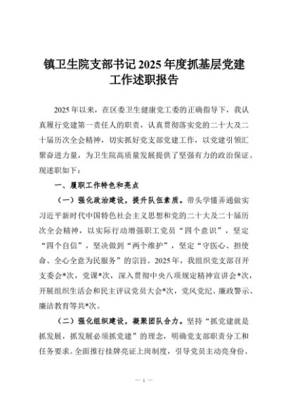 【七哥公文】2025年:镇卫生院支部书记2025年度抓基层党建工作述职报告+更多免费公文+VX:QiGeGongWen2024