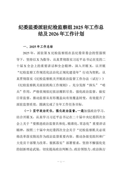 【七哥公文】2025年:纪委监委派驻纪检监察组2025年工作总结及2026年工作计划+更多免费公文+VX:QiGeGongWen2024