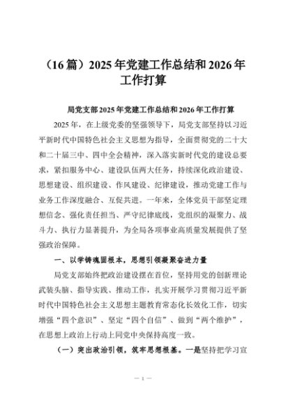 【七哥公文】2025年:(16篇)2025年党建工作总结和2026年工作打算+更多免费公文+VX:QiGeGongWen2024