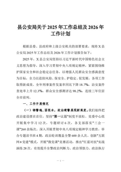 【七哥公文】2025年:县公安局关于2025年工作总结及2026年工作计划+更多免费公文+VX:QiGeGongWen2024