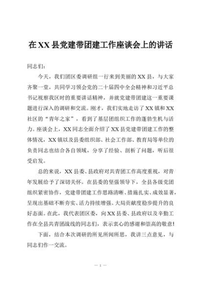 / 【七哥公文】2025年:在XX县党建带团建工作座谈会上的讲话+更多免费公文+VX:QiGeGongWen2024