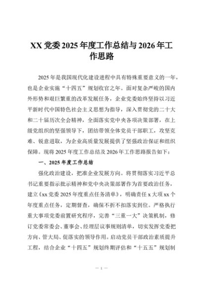 / 【七哥公文】2025年:XX党委2025年度工作总结与2026年工作思路+更多免费公文+VX:QiGeGongWen2024