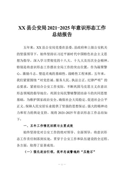 【七哥公文】2025年:XX县公安局2021-2025年意识形态工作总结报告+更多免费公文+VX:QiGeGongWen2024