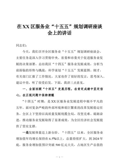 / 【七哥公文】2025年:在XX区服务业“十五五”规划调研座谈会上的讲话+更多免费公文+VX:QiGeGongWen2024