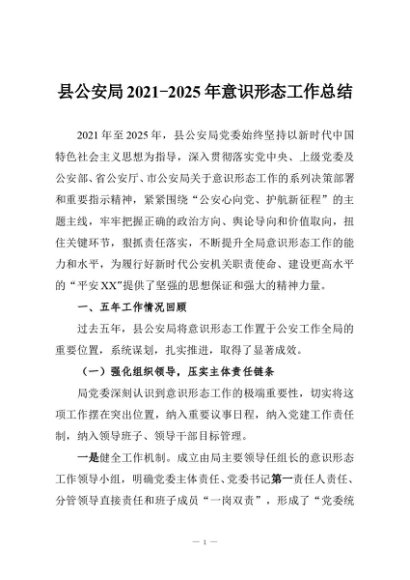/ 【七哥公文】2025年:县公安局2021-2025年意识形态工作总结+更多免费公文+VX:QiGeGongWen2024