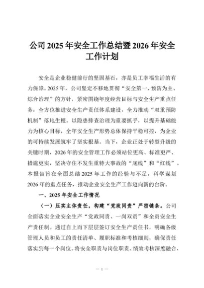 【七哥公文】2025年:公司2025年安全工作总结暨2026年安全工作计划+更多免费公文+VX:QiGeGongWen2024