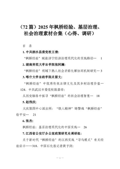 【七哥公文】2025年:(72篇)2025年枫桥经验、基层治理、社会治理素材合集(心得、调研)+更多免费公文+VX:QiGeGongWen2024