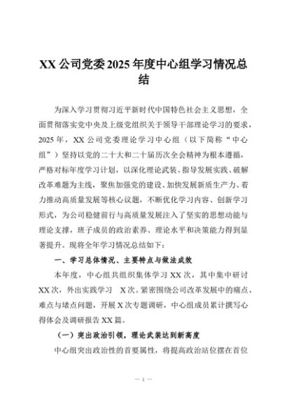 / 【七哥公文】2025年:XX公司党委2025年度中心组学习情况总结+更多免费公文+VX:QiGeGongWen2024