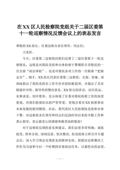 【七哥公文】2025年:在XX区人民检察院党组关于二届区委第十一轮巡察情况反馈会议上的表态发言+更多免费公文+VX:QiGeGongWen2024
