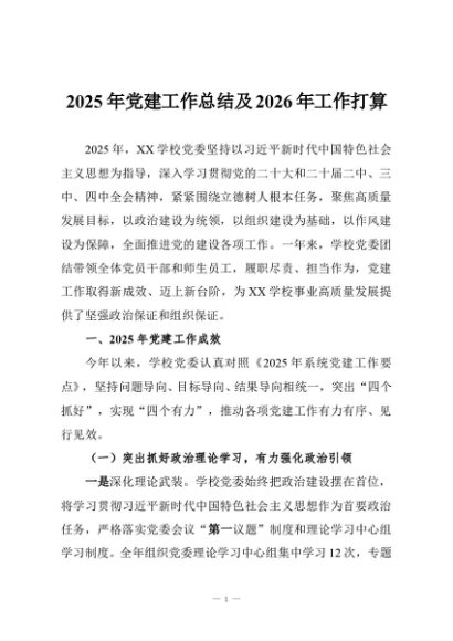 / 【七哥公文】2025年:2025年党建工作总结及2026年工作打算+更多免费公文+VX:QiGeGongWen2024