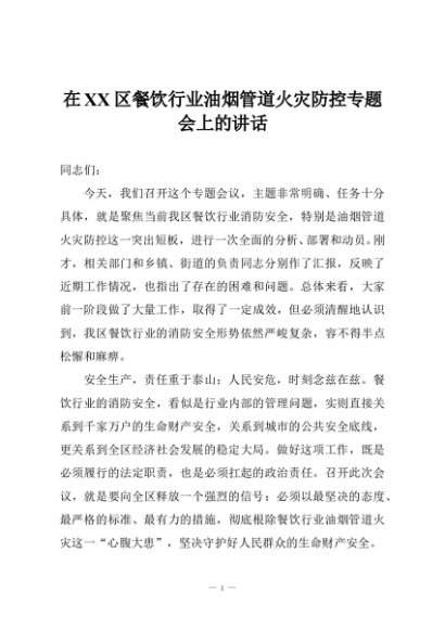 / 【七哥公文】2025年:在XX区餐饮行业油烟管道火灾防控专题会上的讲话+更多免费公文+VX:QiGeGongWen2024