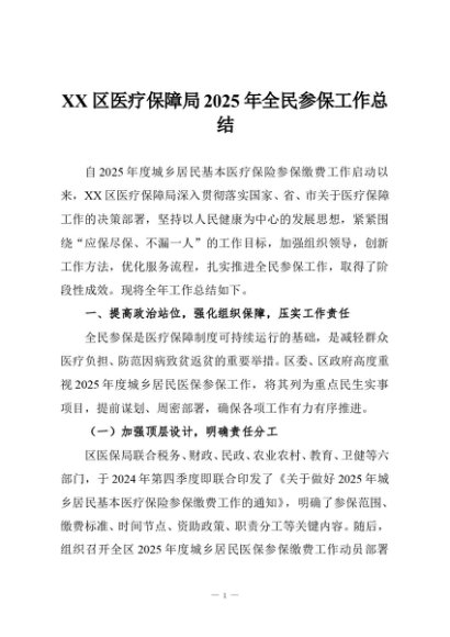/ 【七哥公文】2025年:XX区医疗保障局2025年全民参保工作总结+更多免费公文+VX:QiGeGongWen2024