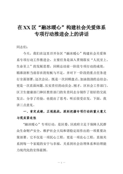 【七哥公文】2025年:在XX区“融冰暖心”构建社会关爱体系专项行动推进会上的讲话+更多免费公文+VX:QiGeGongWen2024