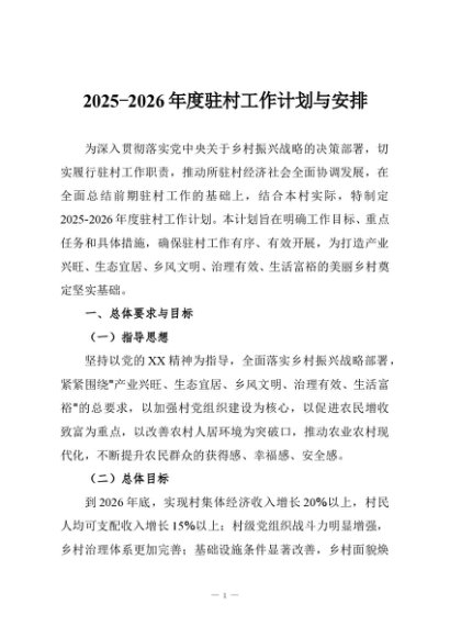 / 【七哥公文】2025年:2025-2026年度驻村工作计划与安排+更多免费公文+VX:QiGeGongWen2024