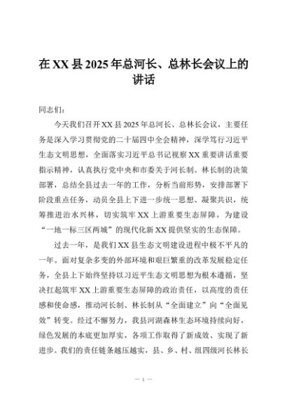 / 【七哥公文】2025年:在XX县2025年总河长、总林长会议上的讲话+更多免费公文+VX:QiGeGongWen2024
