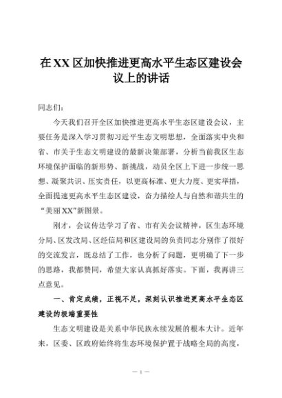 / 【七哥公文】2025年:在XX区加快推进更高水平生态区建设会议上的讲话+更多免费公文+VX:QiGeGongWen2024