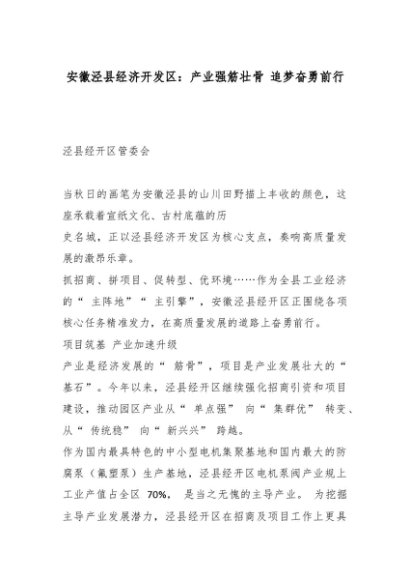 【七哥公文】2025年:安徽泾县经济开发区:产业强筋壮骨 追梦奋勇前行_副本+更多免费公文+VX:QiGeGongWen2024