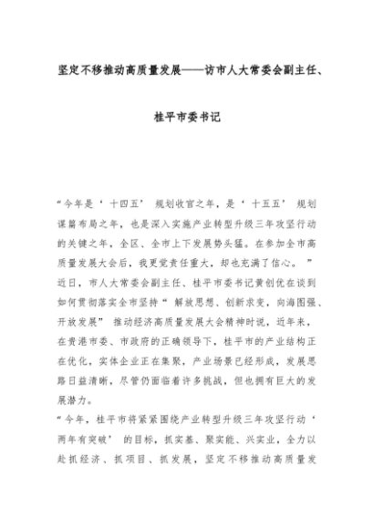 【七哥公文】2025年:坚定不移推动高质量发展——访市人大常委会副主任、桂平市委书记_副本+更多免费公文+VX:QiGeGongWen2024