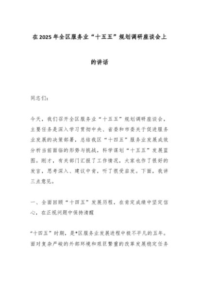 【七哥公文】2025年:在2025年全区服务业“十五五”规划调研座谈会上的讲话_副本+更多免费公文+VX:QiGeGongWen2024