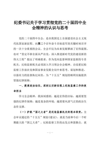 【七哥公文】2025年:纪委书记关于学习贯彻党的二十届四中全会精神的认识与思考+更多免费公文+VX:QiGeGongWen2024