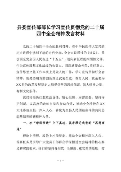 【七哥公文】2025年:县委宣传部部长学习宣传贯彻党的二十届四中全会精神发言材料+更多免费公文+VX:QiGeGongWen2024