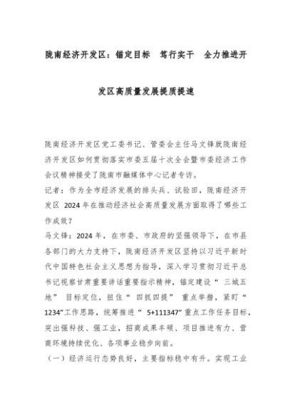 【七哥公文】2025年:陇南经济开发区:锚定目标 笃行实干 全力推进开发区高质量发展提质提速_副本+更多免费公文+VX:QiGeGongWen2024