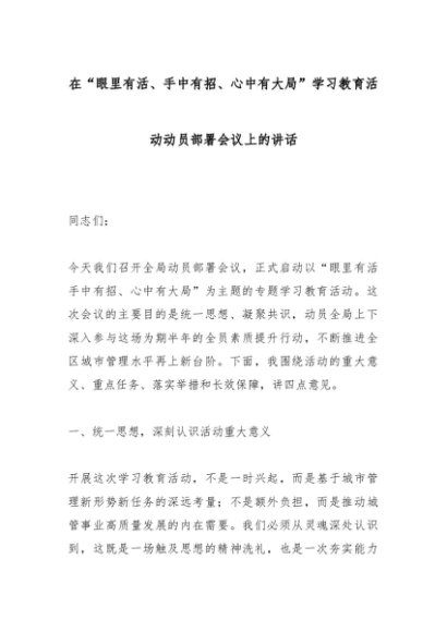 【七哥公文】2025年:在“眼里有活、手中有招、心中有大局”学习教育活动动员部署会议上的讲话_副本+更多免费公文+VX:QiGeGongWen2024