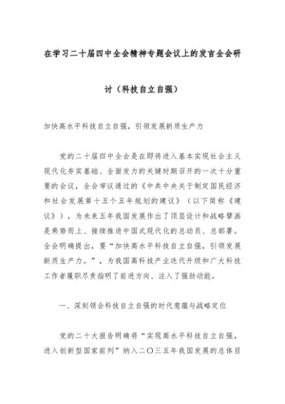 【七哥公文】2025年:在学习二十届四中全会精神专题会议上的发言全会研讨(科技自立自强)_副本+更多免费公文+VX:QiGeGongWen2024