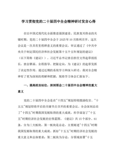 / 【七哥公文】2025年:学习贯彻党的二十届四中全会精神研讨发言心得+更多免费公文+VX:QiGeGongWen2024