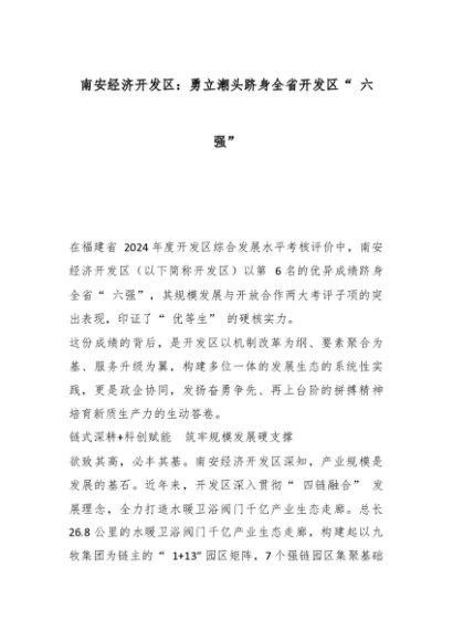 【七哥公文】2025年:南安经济开发区:勇立潮头跻身全省开发区“ 六强”_副本+更多免费公文+VX:QiGeGongWen2024