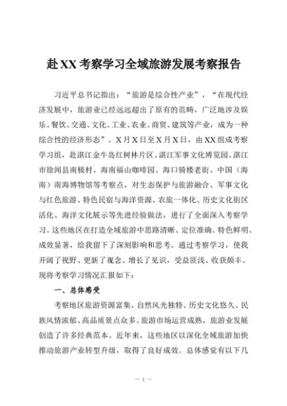 / 【七哥公文】2025年:赴XX考察学习全域旅游发展考察报告+更多免费公文+VX:QiGeGongWen2024