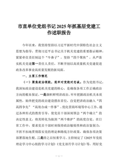 / 【七哥公文】2025年:市直单位党组书记2025年抓基层党建工作述职报告+更多免费公文+VX:QiGeGongWen2024