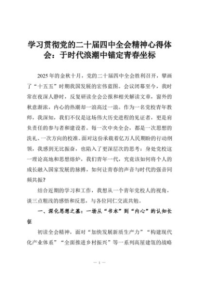 【七哥公文】2025年:学习贯彻党的二十届四中全会精神心得体会:于时代浪潮中锚定青春坐标+更多免费公文+VX:QiGeGongWen2024