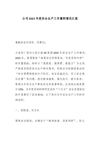 / 【七哥公文】2025年:公司2025年度安全生产工作履职情况汇报_副本+更多免费公文+VX:QiGeGongWen2024