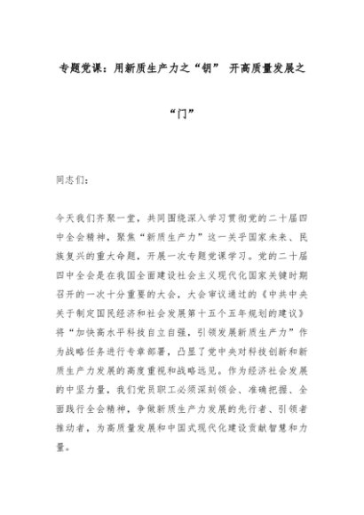 【七哥公文】2025年:专题党课:用新质生产力之“钥” 开高质量发展之“门”_副本+更多免费公文+VX:QiGeGongWen2024