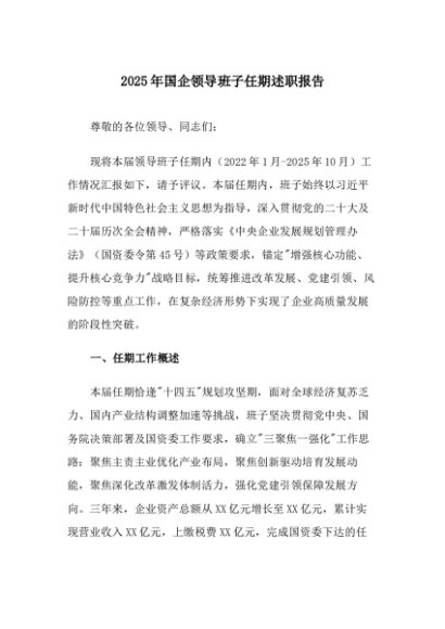 / 【七哥公文】2025年:2025年国企领导班子任期述职报告+更多免费公文+VX:QiGeGongWen2024