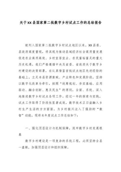 【七哥公文】2025年:关于XX县国家第二批数字乡村试点工作的总结报告_副本+更多免费公文+VX:QiGeGongWen2024