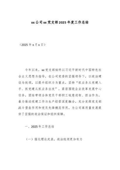 / 【七哥公文】2025年:xx公司xx党支部2025年度工作总结_副本+更多免费公文+VX:QiGeGongWen2024
