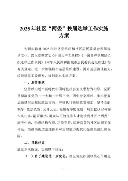 / 【七哥公文】2025年:2025年社区“两委”换届选举工作实施方案+更多免费公文+VX:QiGeGongWen2024