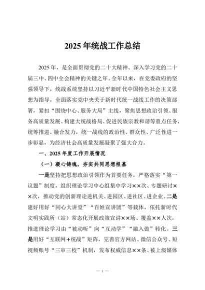 / 【七哥公文】2025年:2025年统战工作总结+更多免费公文+VX:QiGeGongWen2024