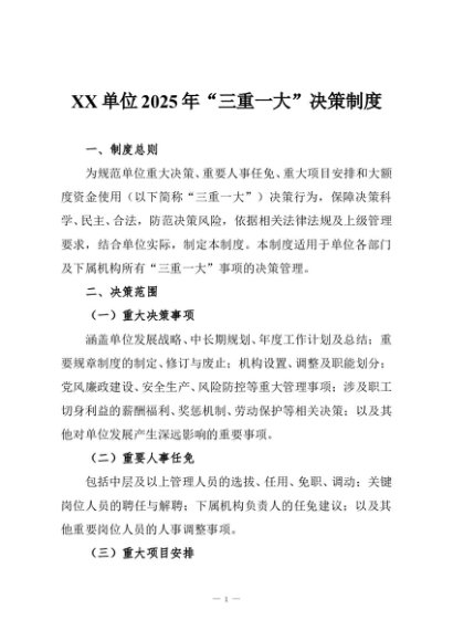 / 【七哥公文】2025年:XX单位2025年“三重一大”决策制度和会议记录+更多免费公文+VX:QiGeGongWen2024