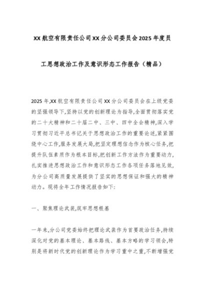 【七哥公文】2025年:XX航空有限责任公司XX分公司委员会2025年度员工思想政治工作及意识形态工作报告(精品)_副本+更多免费公文+VX:QiGeGongWen2024