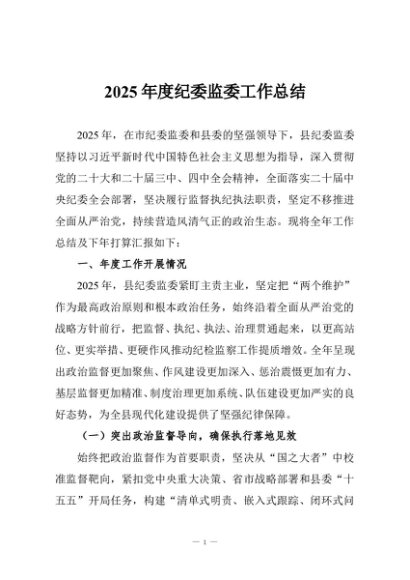 / 【七哥公文】2025年:2025年度纪委监委工作总结+更多免费公文+VX:QiGeGongWen2024