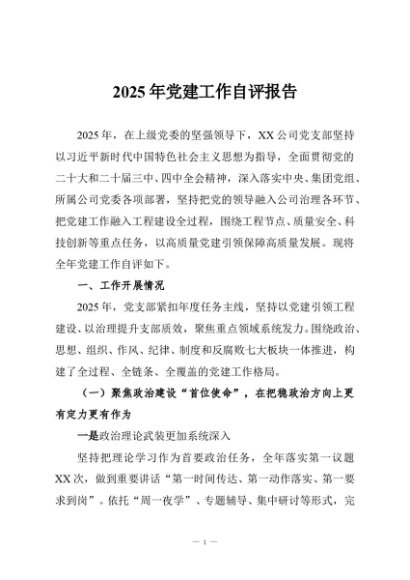 / 【七哥公文】2025年:2025年党建工作自评报告+更多免费公文+VX:QiGeGongWen2024