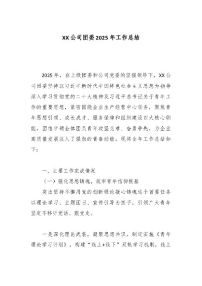 / 【七哥公文】2025年:XX公司团委2025年工作总结_副本+更多免费公文+VX:QiGeGongWen2024
